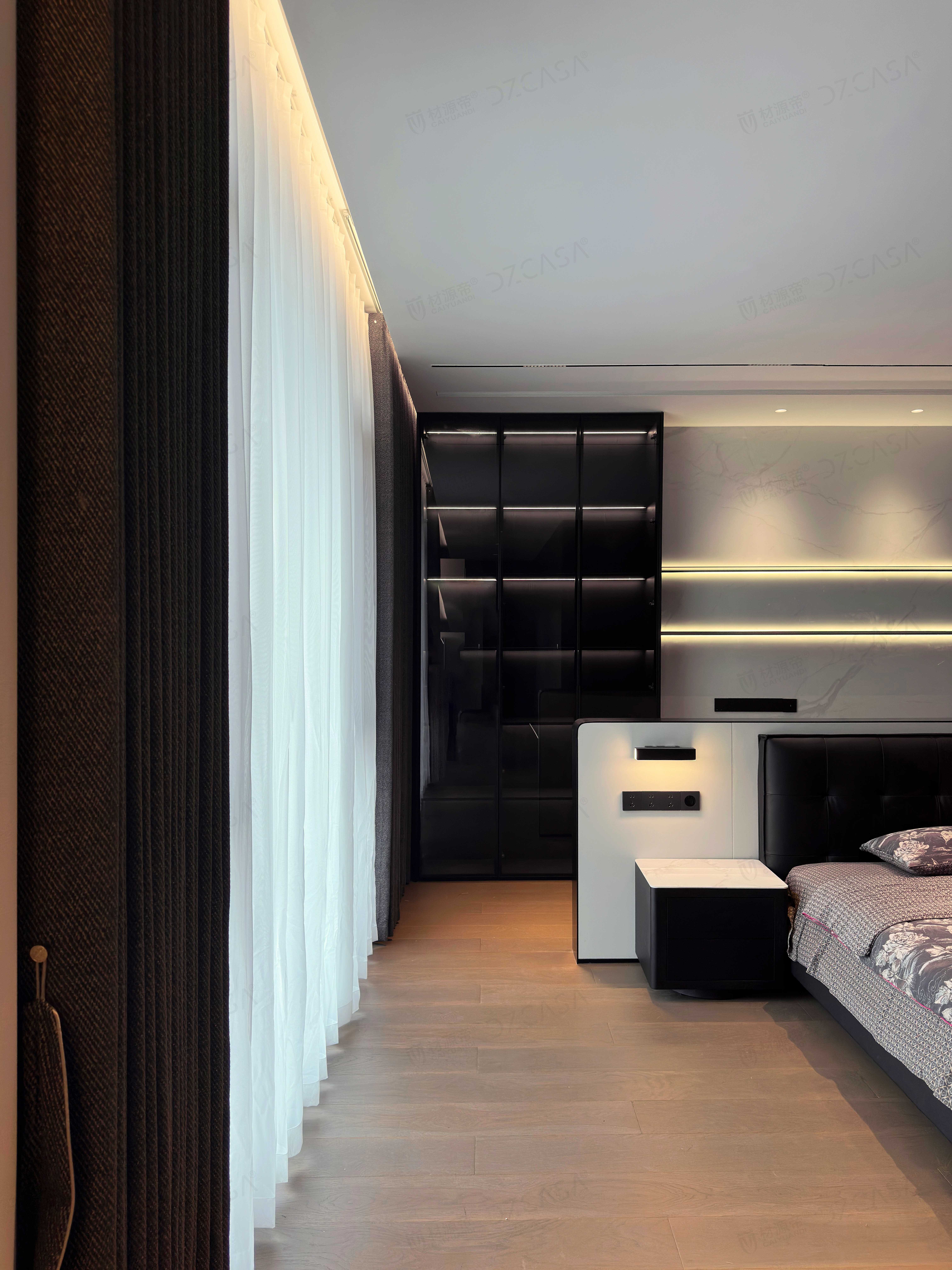 此间卧室在演绎黑白哲学的张力的同时,简约却不简单,以更自由的方式重构格局。