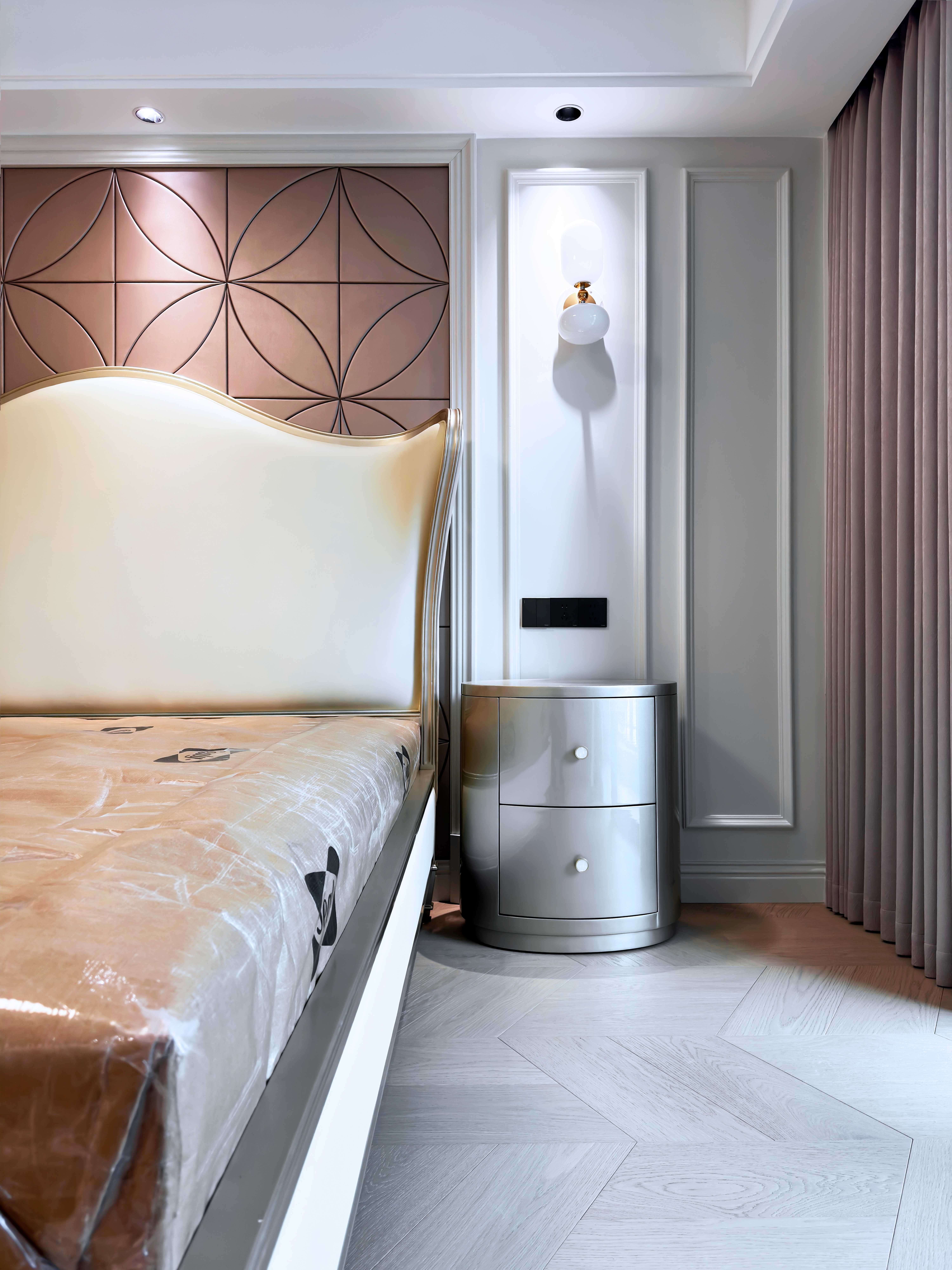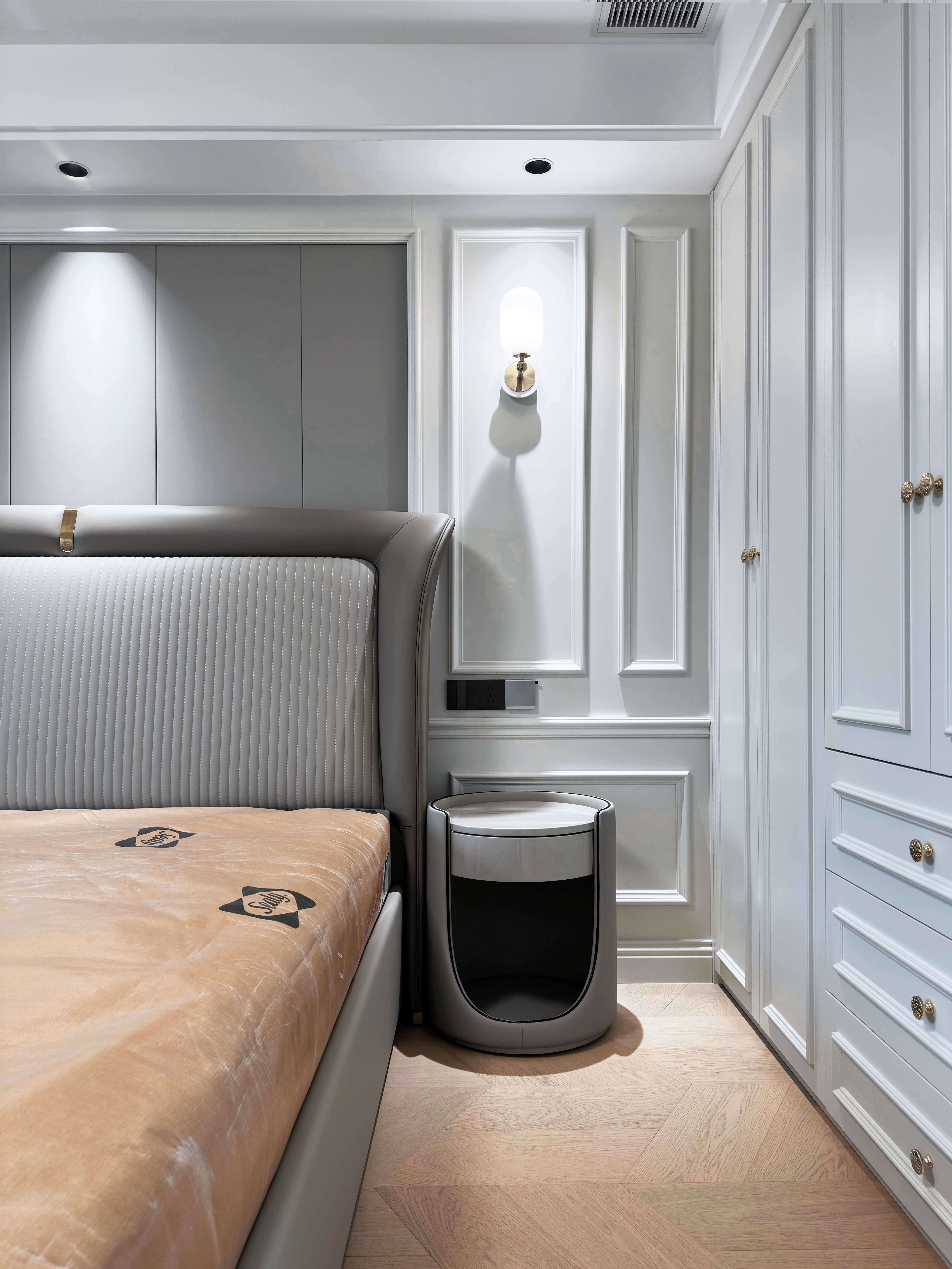 整体空间在简约背景下恰到好处地融入复古元素,于细节处彰显品位,营造出舒适且富有温度的睡眠环境。